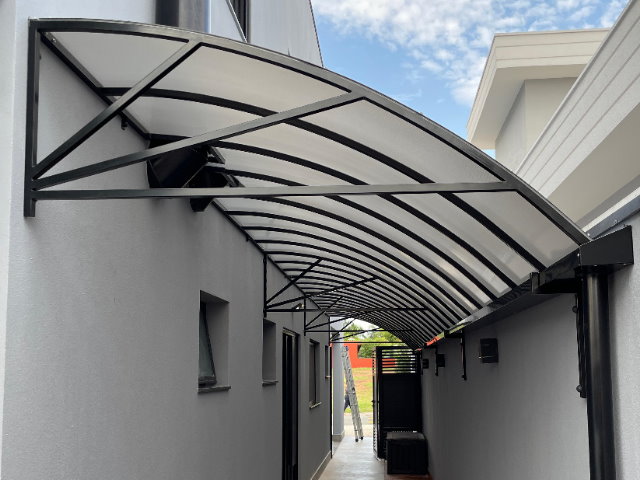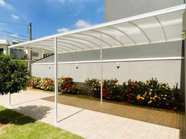 Personalização e Aplicações-O Toldo em Policarbonato é fabricado sob medida, de acordo com cada projeto, com estrutura em alumínio ou aço e tem o acabamento em pintura eletrostática, garantindo assim total resistência às intempéries e um visual impecável. As principais aplicações incluem:-Varandas e Sacadas: Proporciona proteção contra sol e chuva, sem comprometer a luminosidade natural.-Garagens e Estacionamentos: Ideal para proteger veículos contra intempéries, mantendo o espaço iluminado.-Portas e Janelas: Reduz o calor interno e protege contra chuvas leves.-Áreas de Lazer e Gourmet: Cria espaços confortáveis e esteticamente agradáveis para convivência.